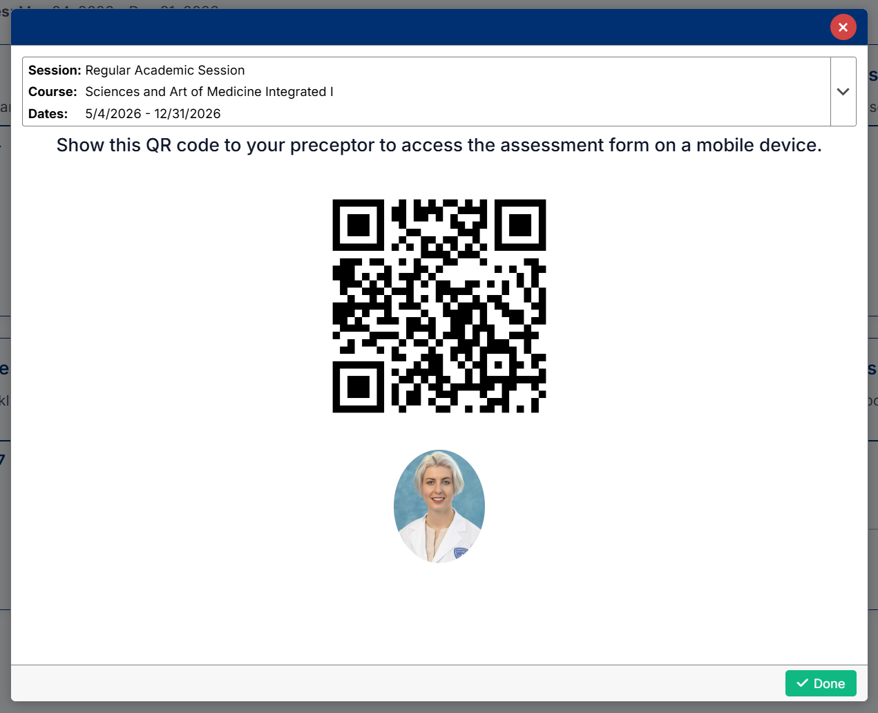 - Ask your preceptor to scan the QR code using their mobile device