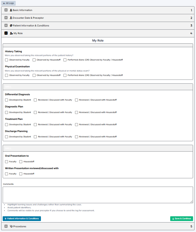 Note: Weekly and Ad-hoc assessments can still be requested and completed without associated patient logs in cases where specific clinical conditions were not encountered.