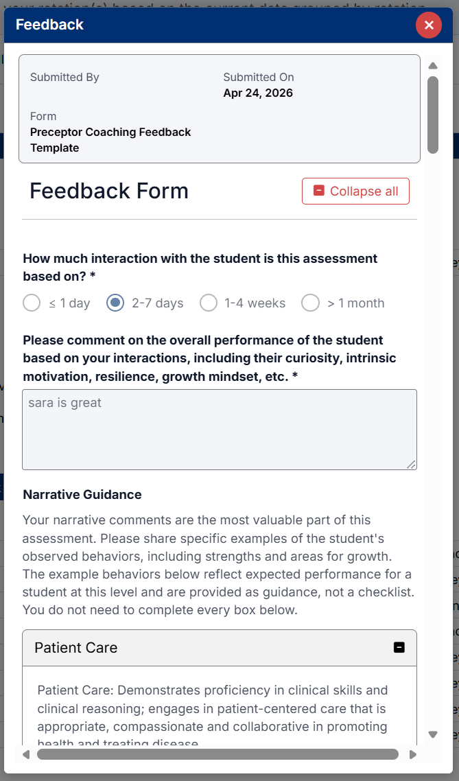 Request ad hoc assessments immediately after a meaningful clinical interaction, and review feedback as soon as it is submitted to reinforce learning while the experience is still fresh.